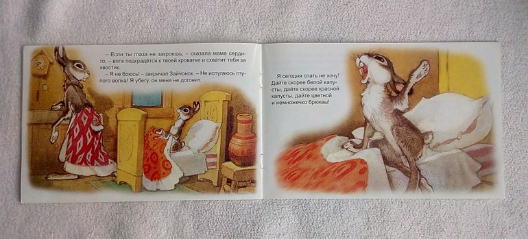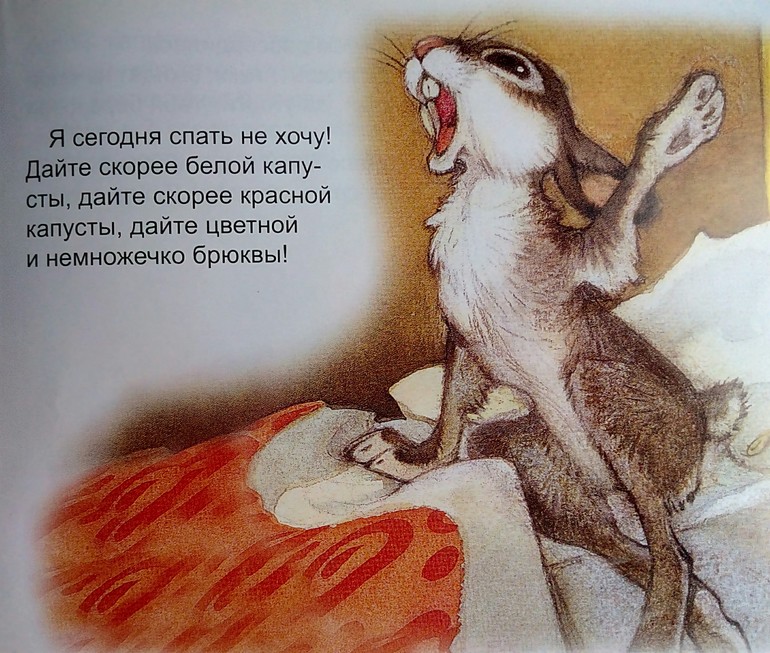 А требование зайчика о капусте прочно вошло в наш семейный лексикон. Не только перед сном, но и завтраком кто-нибудь может вдруг попросить: "Дайте скорее красной капусты, дайте цветной и немножечко брюквы!"