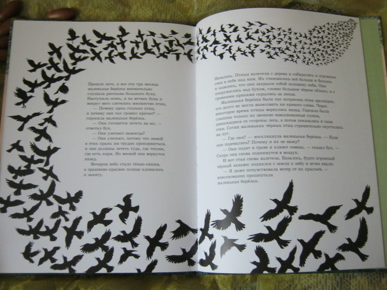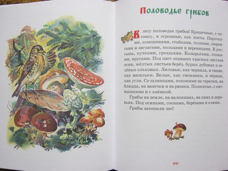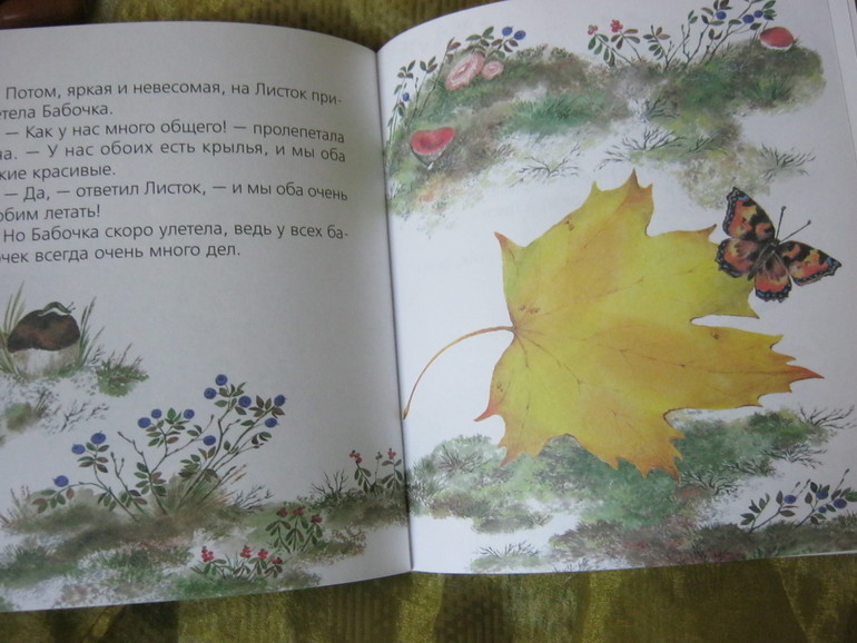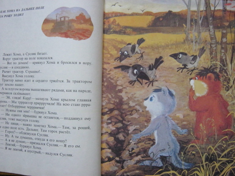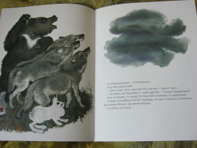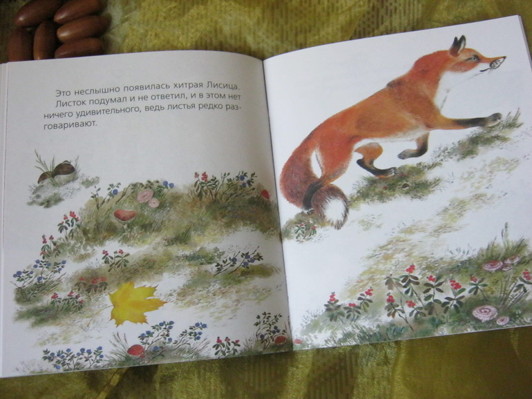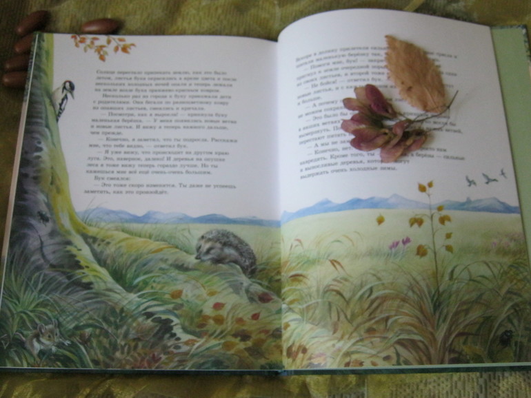 Книга большого формата, и крупные иллюстрации Чарушина занимают собой весь разворот - очень наглядно )) Чем привлекает и завораживает детей эта сказка я не знаю, но прочитав однажды и увидев реакцию, теперь читаю постоянно каждую осень. Внесла ее в свой личный "хрестоматийный" список.