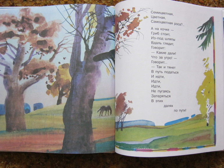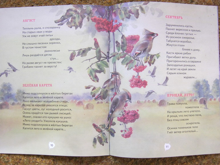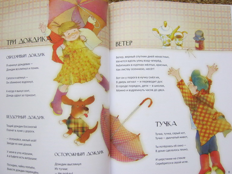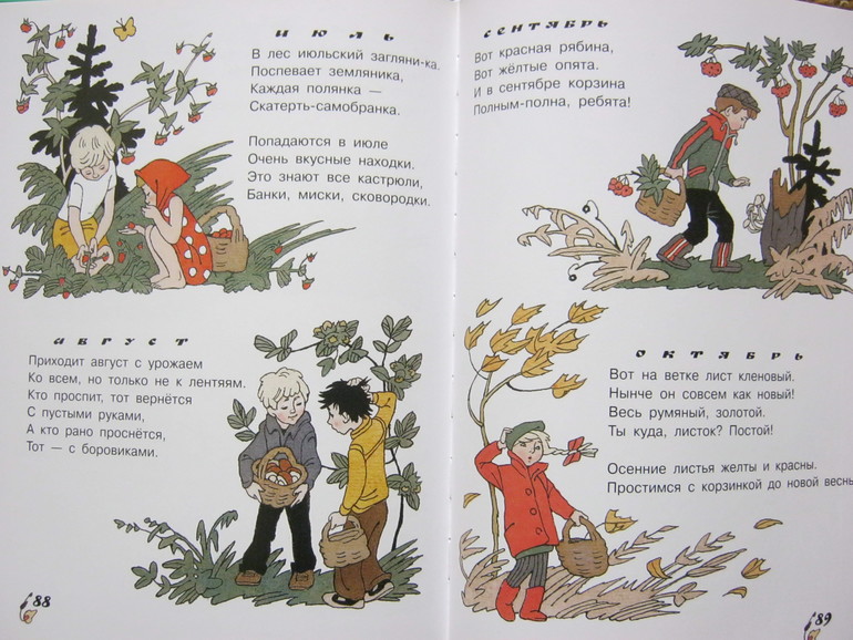 Это книга должна стать образцом для издателей. Сколько у меня современных сборников, где все содержимое перемешано в дикий винегрет. Каша из стихов для разного возраста, разных тем и уровня мастерства. И даже времена года везде перепутаны и воткнуты как придется. А здесь за весной, как и положено, наступает лето, а летние стихи сменяются осенними...