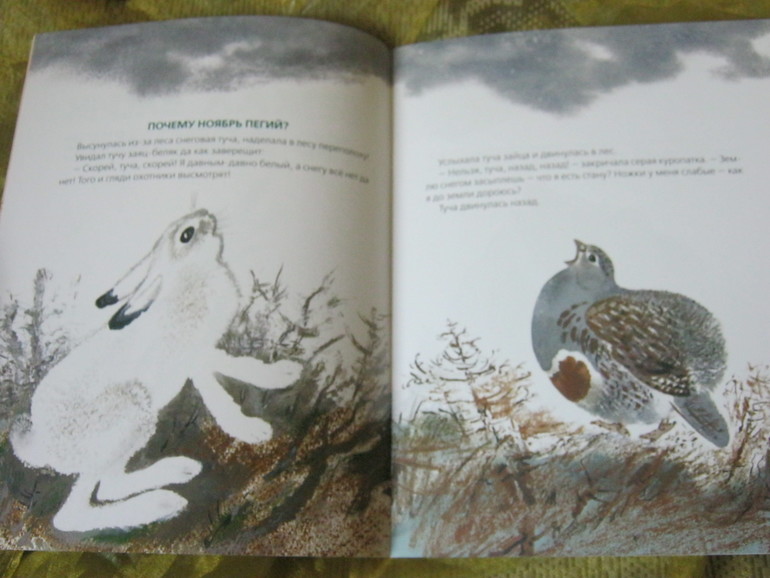 Отлично читается и слушается сказка Сладкова Почему ноябрь пегий в книжке Бежал ежик по дорожке.