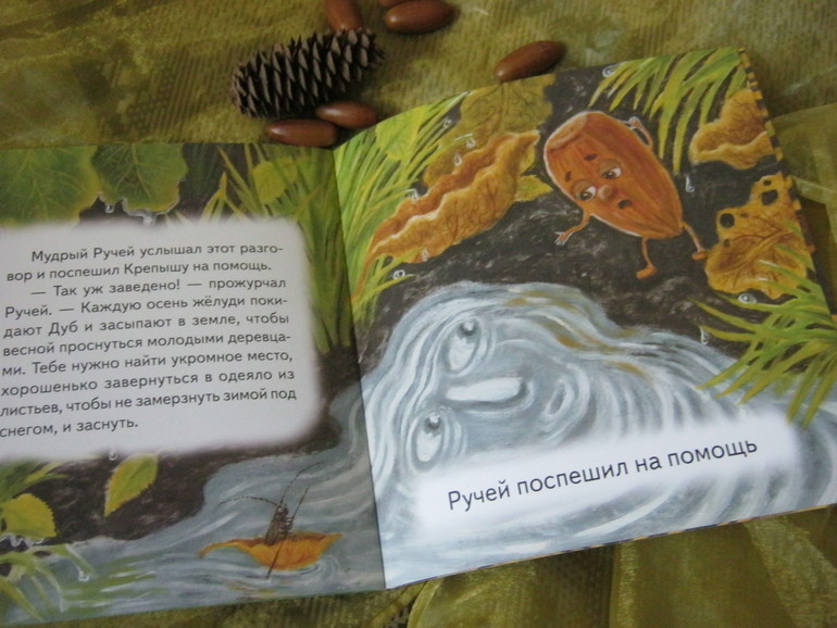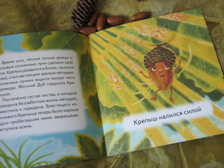 Эту книжечку с коротким немудрящим текстом всегда все слушали очень внимательно. Довольно часто перечитывали. Интересно оформленную красивую картонку "Желудь и дуб", которой, к сожалению, уже давно нигде нет, воспринимали продолжением истории, правда, в ней картинки нравились гораздо больше, чем текст, их листали туда-сюда многократно, еле дослушав нудноватую историю до конца ))