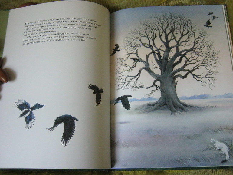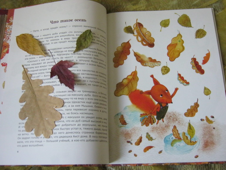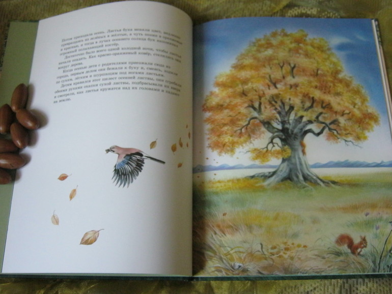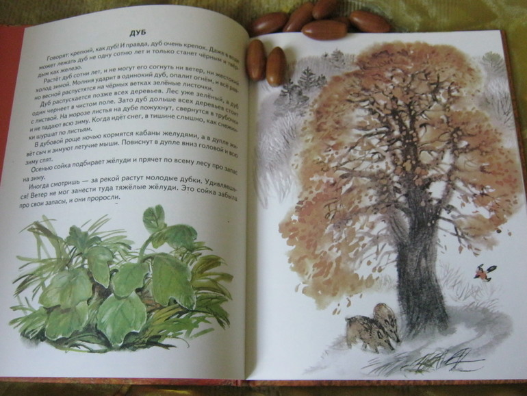 В этой книге вы можете прочесть малышу про дуб, который дольше всех деревьев не стряхивает листву