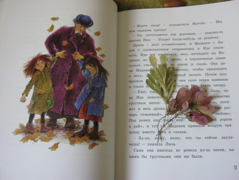 Вообще-то действие рассказа могло происходить в любое время года при любой погоде, но так здорово Мадикен с Лизой шли и шуршали осенними листьями, что очень захотелось поместить книгу в обзор!