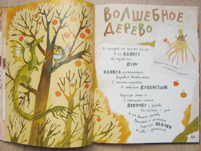 Книга для чтения, художественного чтения - потому что в ней есть стихи, и одновременно - руководство к действию. Еще не читая, а только перевернув пару страниц, руки уже начинают чесаться. Столько идей для творчества! Столько разных техник! Столько волшебных пенделей под одной обложкой! Книга на долгие-долгие годы. Сейчас вы будете читать ее ребенку, а потом он сам начнет читать и экспериментировать с красками и материалами, ведь у таких книг нет ограничений по верхнему пределу возраста.