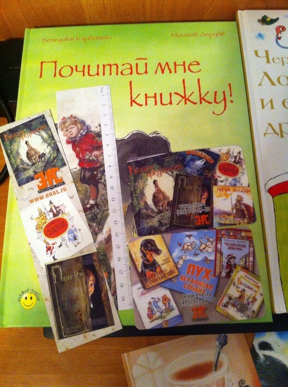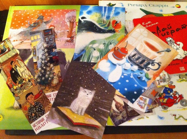 Мой улов небольшой: Скарри за 350р, Тайны анатомии за 500 р, Почитай мне книжку за 300 р, Дональдсон 250 р и Кот Саймон за 50р ) Несколько открыток и, бонусом к покупкам, календарики и закладки.