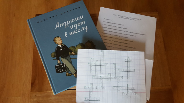 И вот книга прочитана. С большим удовольствием. Небольшими купюрами (убрала "героя" Павлика Морозова). И по книге даже выполнен кроссворд. Повествование похоже на "Первоклассницу" Е. Шварца, но про мальчишек. Андрюша совсем не идеальный советский школьник, чего я опасалась:) нет, живой ребенок со своими проблемами: зависть, хвастливость, вспышки гнева... всякое с ним случается. Иногда виноват, иногда достается ему ни за что - потому что взрослые тоже не идеальные. В общем, мы с ним прожили целый год, насыщенный разными событиями. Такой важный год - первый школьный класс!