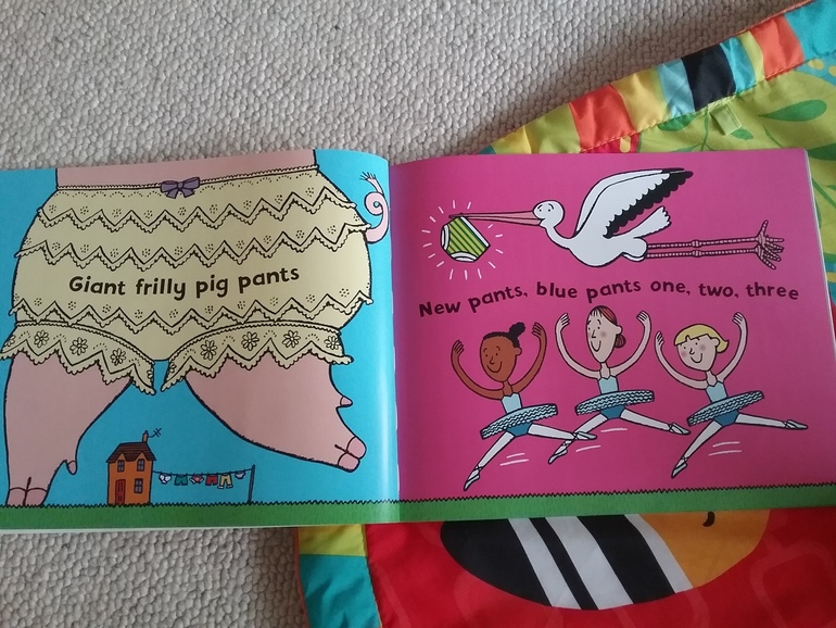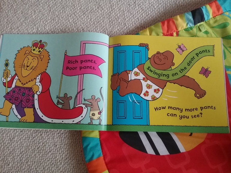 Знаю по себе как трудно найти хорошую и интересную книгу на языке, решила написать. Эта книга моему Мише очень понравилась, язык простой, слова как на начальный уровень. На 3-4 года интересно. Они её в садике изучают. Есть ещё такая же книга socks, нам не понравилась. More Pants тоже не интересная