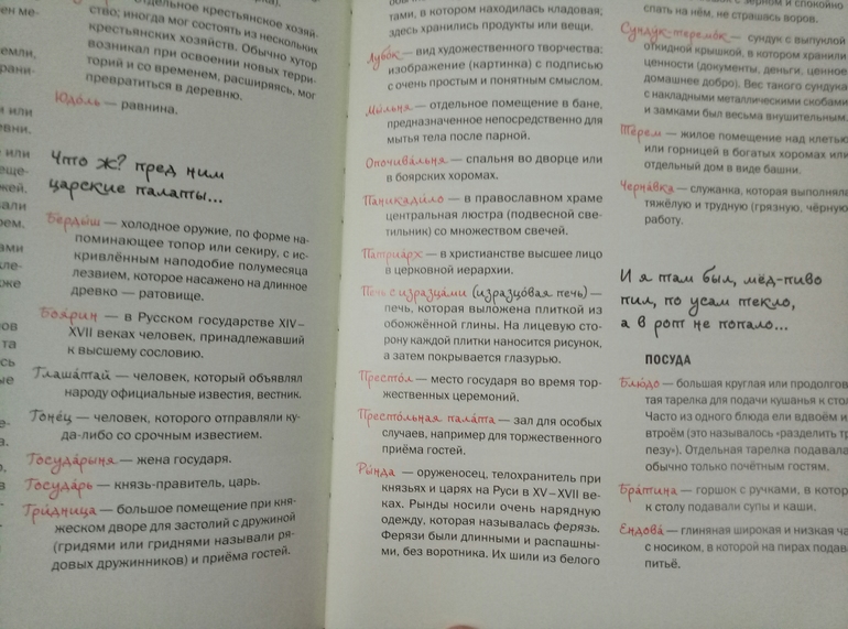 Сразу понятно, что такая книга это не просто книжка- развлекалочка, а кладезь полезной и интереснейшей информации! и что важно, получать ее ребенок будет в игровой, развлекательной форме) это не просто книга, это словарь устаревших, но так часто встречающихся в литературных произведениях слов!Из книжки мы не только узнаем значения этих слов, но и увидим, как они выглядят. Книжка большего формата на мелованной бумаге. Отличное подарочное издание! Можно немного придраться к рисункам, но это Клевер, и них свой взгляд на иллюстрации) ну а потом я сама в таком восторге от книги, что придираться не хочется)