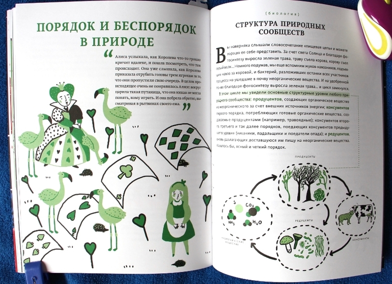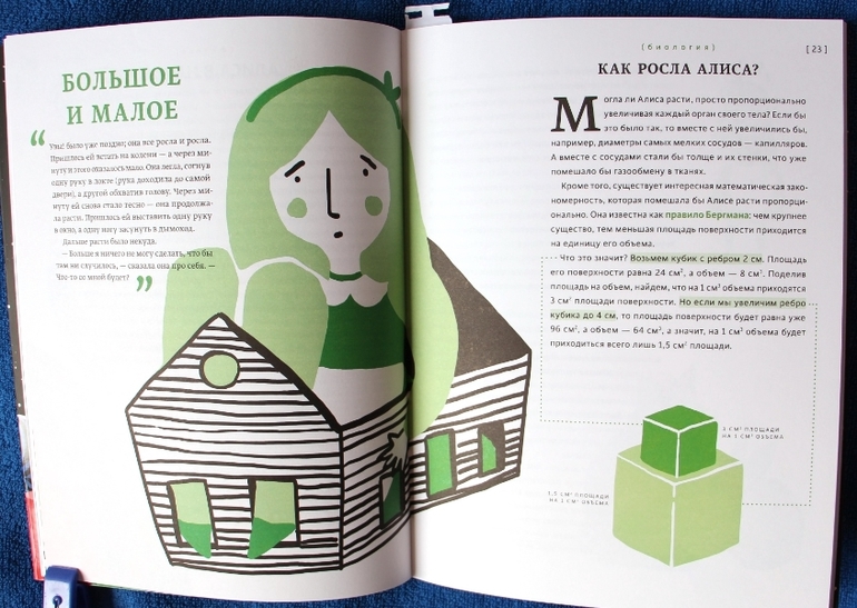 Книга не про Алису все же, а про науку и знания. Алиса, на мой взгляд, позволяет приблизить эту информацию к детям, добавить ей «интересности» и жизненности. Все знания даются с примерами и одним из примеров и являются приключения Алисы. А еще она логически объединяет приведенную информацию из разных областей.