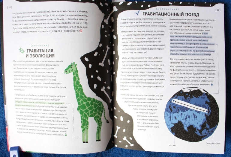 Например, здорово объясняется, как гравитация повлияла на эволюцию: будь она сильнее мы бы не изящно дефилировали на каблучках, а нервно бы ползали, имея плоский скелет. Или улыбка без кота это не бред, а вполне себе научный логический парадокс, который (как я поняла) и движет науку вперед.