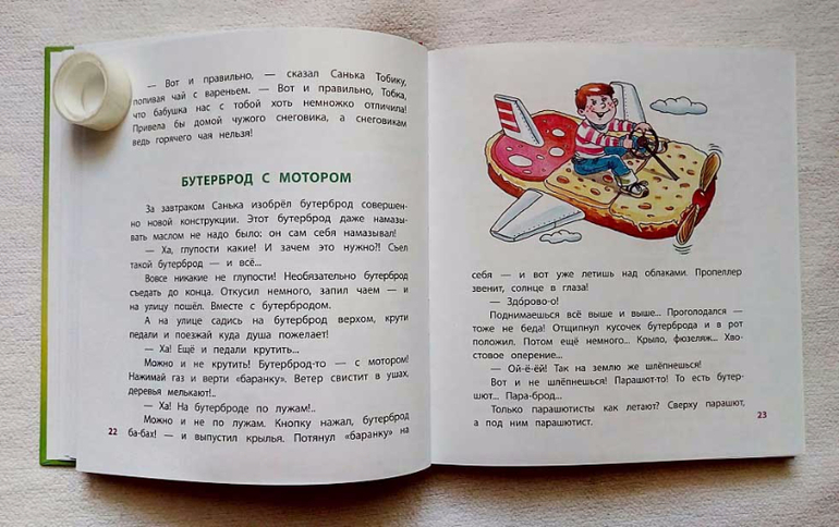 Сборник случайно попался нам на глаза в библиотеке и оказался чудесной находкой. Сын не мог оторваться, читал и тихонько хихикал или взрывал тишину громких смехом, а потом самые веселые места перечитывал за семейным обедом. Сборник брали в библиотеке два раза. Шансы обнаружить его в продаже были ничтожно малы. Год выпуска значился, как 2013.