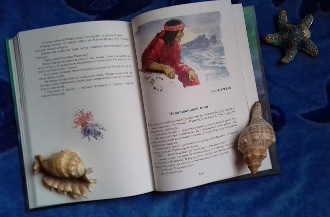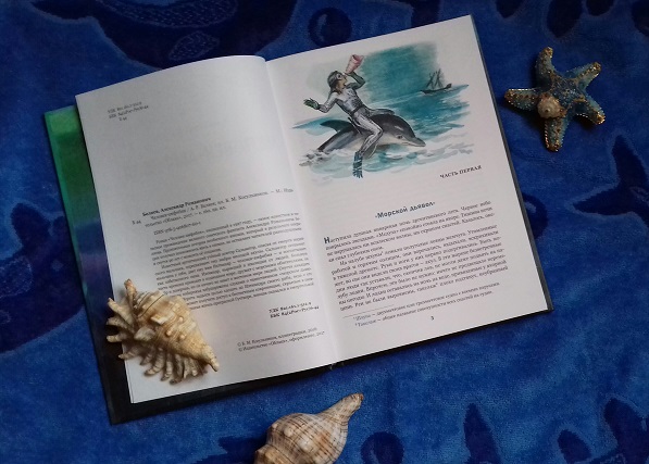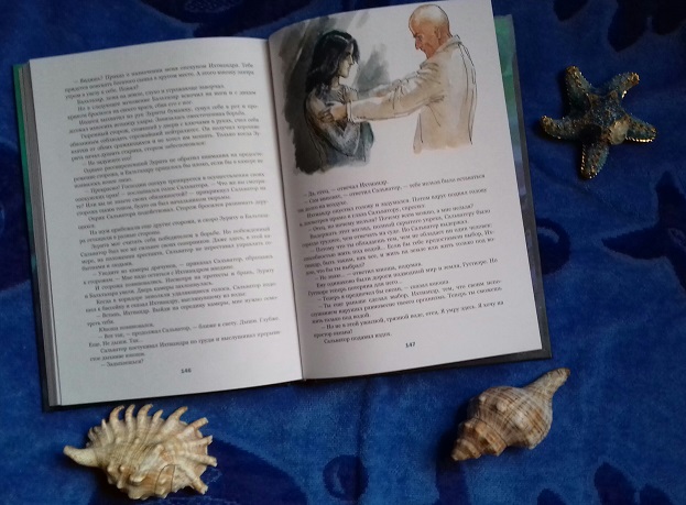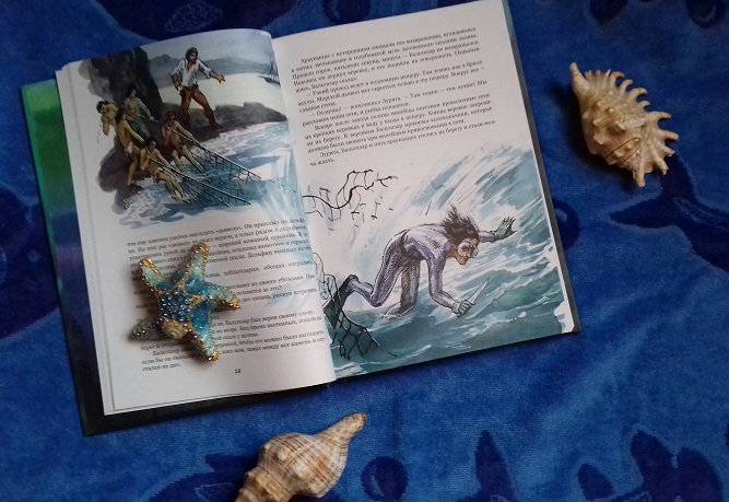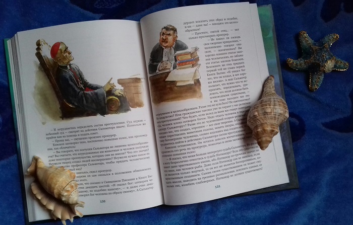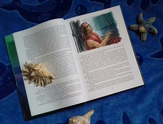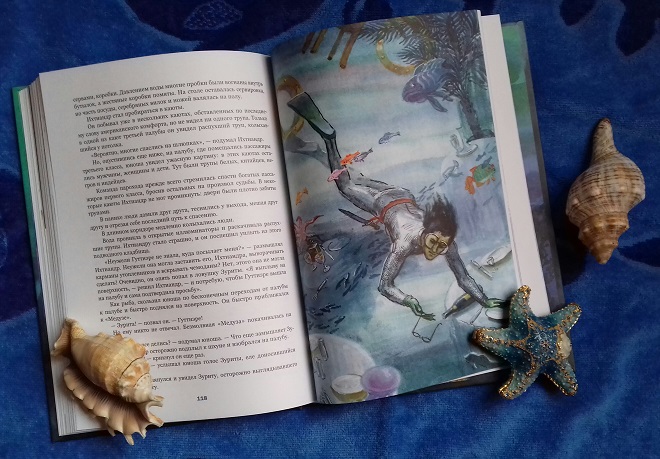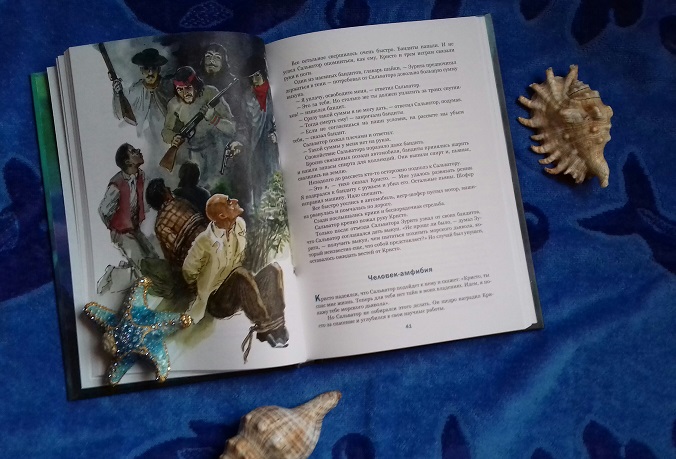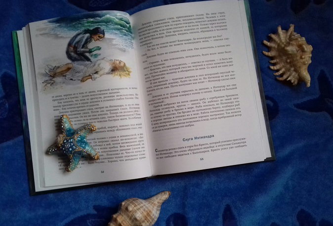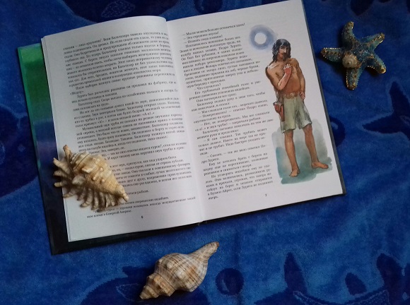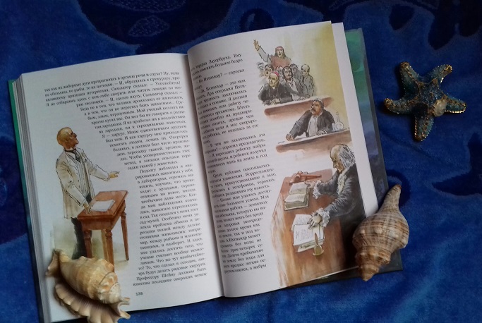 Как видите, иллюстраций на 158 страниц текста вполне достаточно)) Кроме того, есть сноски, где объясняются непонятные слова. Шрифт не сказать, чтобы крупный, но вполне читабельный. Если бы издательство "Облака" запустило серию произведений Александра Беляева, я с удовольствием купила бы их в таком исполнении( очень хочется "Голову профессора Доуэля" и "Ариэль").