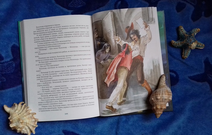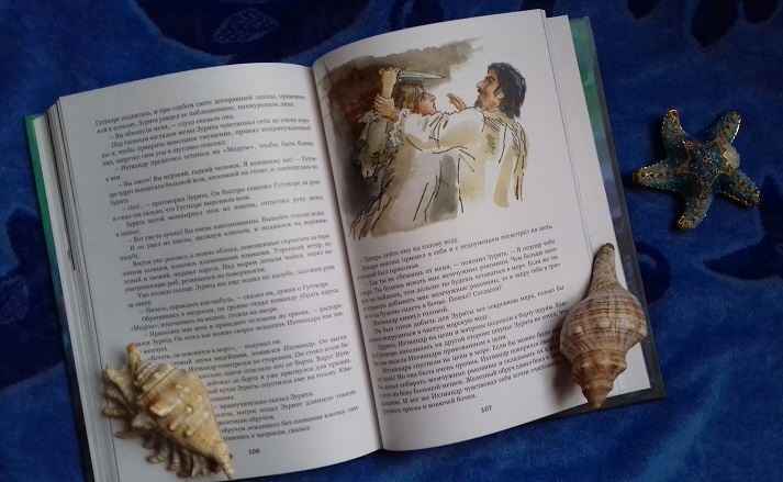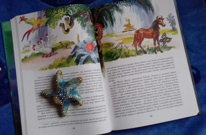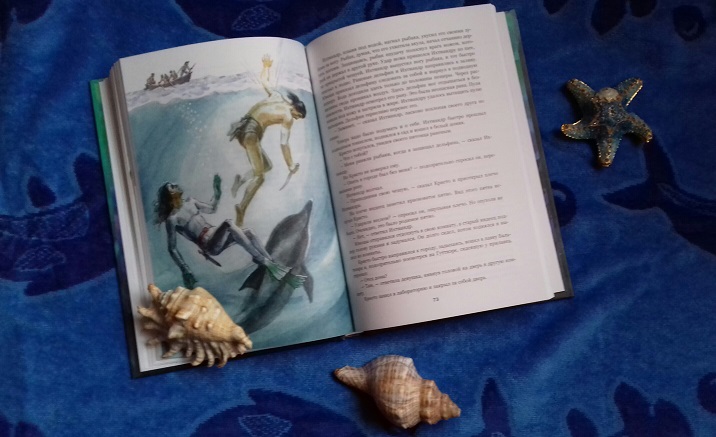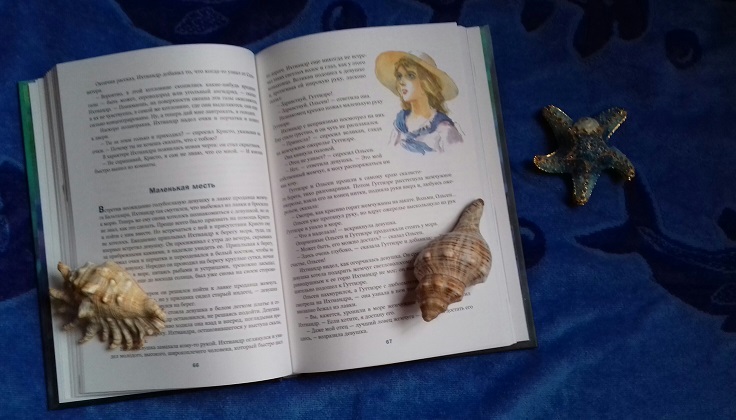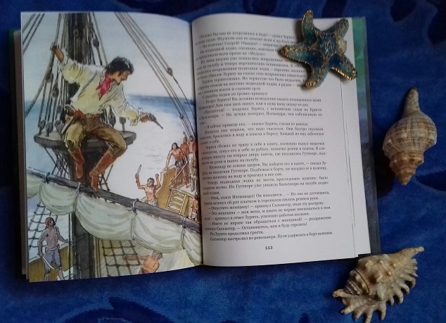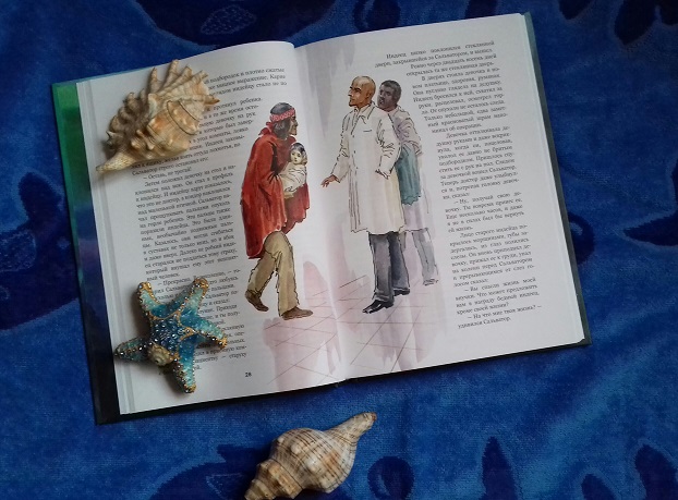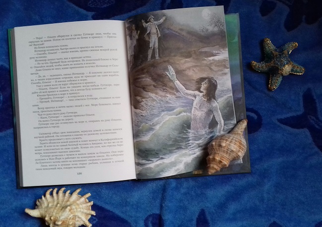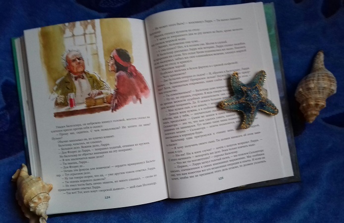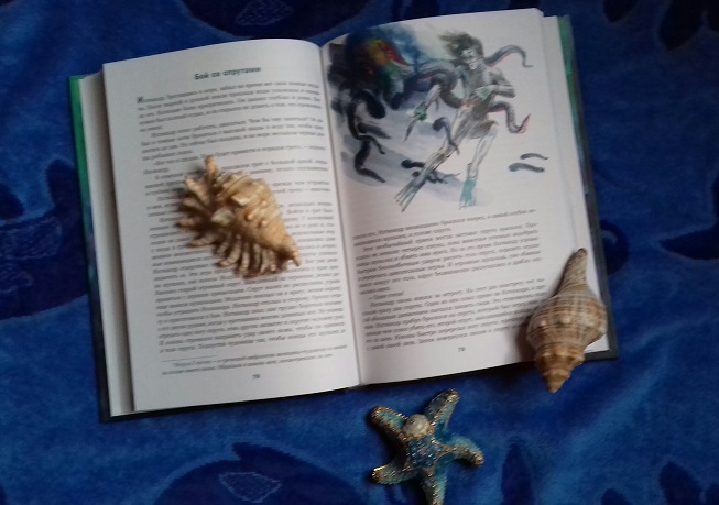 Как видите, иллюстраций на 158 страниц текста вполне достаточно)) Кроме того, есть сноски, где объясняются непонятные слова. Шрифт не сказать, чтобы крупный, но вполне читабельный. Если бы издательство "Облака" запустило серию произведений Александра Беляева, я с удовольствием купила бы их в таком исполнении( очень хочется "Голову профессора Доуэля" и "Ариэль").