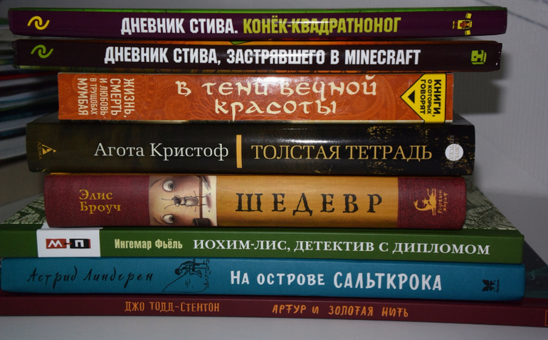 Поздравляю с приобретениями)) "На острове Сальткрока" - моя любимая книга. "Шедевр" тоже понравился, хотя я и не люблю жуков, но цена конечно ((( "Толстую тетрадь" я не смогла читать, начала и бросила, хорошо что не купила книгу. На Хильду и Артура все засматриваюсь, но пока не решаюсь. А какие игры купили в майшопе?