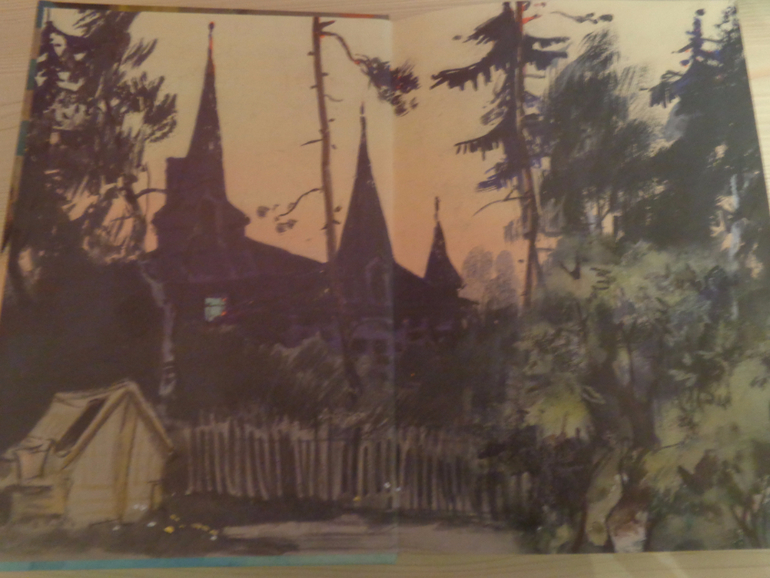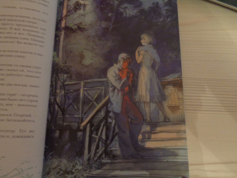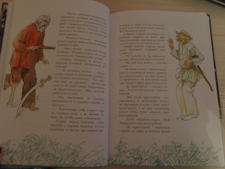 Сначала, как водится, об издании. Размер книги средний, не слишком большой, примерно с учебник. Обложка твердая, страницы достаточно плотные мелованные. Рисунков Германа Мазурина очень много! Я не знаю, с оригиналов ли, что там с цветопередачей, но не имея возможности ни с чем сравнивать, рисунками я очень довольна! Если встречается разворот только с текстом, то внизу все равно нарисованы веточки-листики, а я страсть как люблю оформленные страницы! Шрифт удобный для чтения.