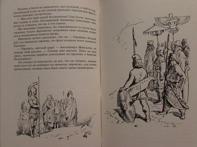 Далее в книге идет рассказ о войне с персами, о горящих Афинах, о Саламинской битве.