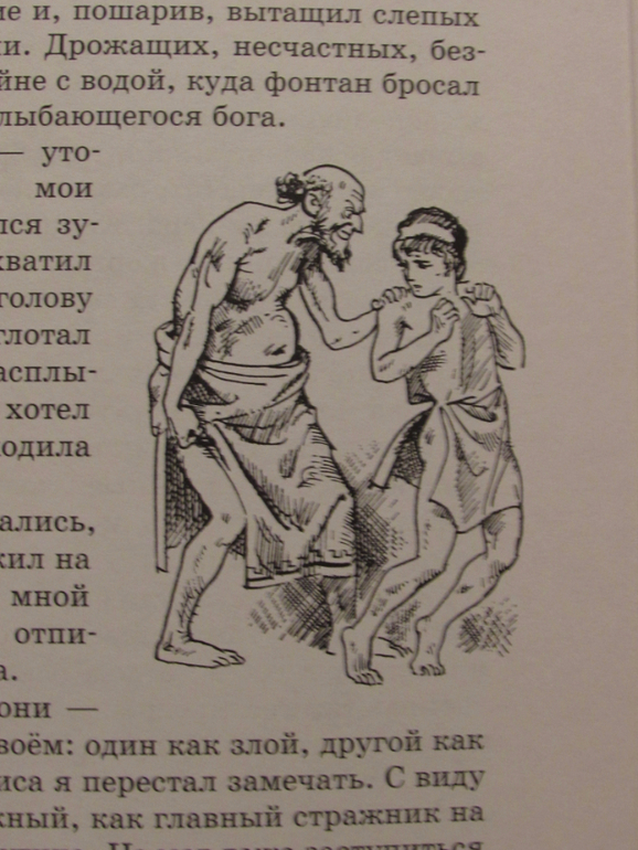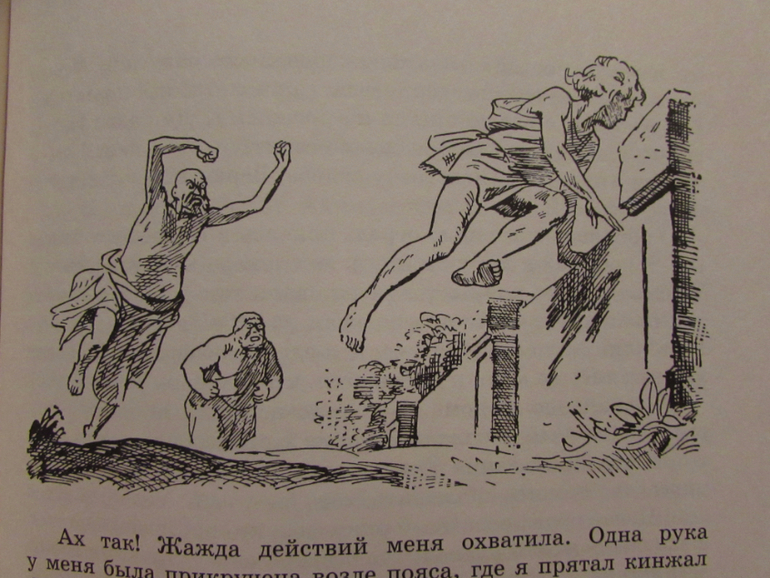 В последних главах книги Алкамен, герой войны с персами, считающий себя уже свободным и готовившийся сам владеть рабами узнает, что по закону он все еще раб…