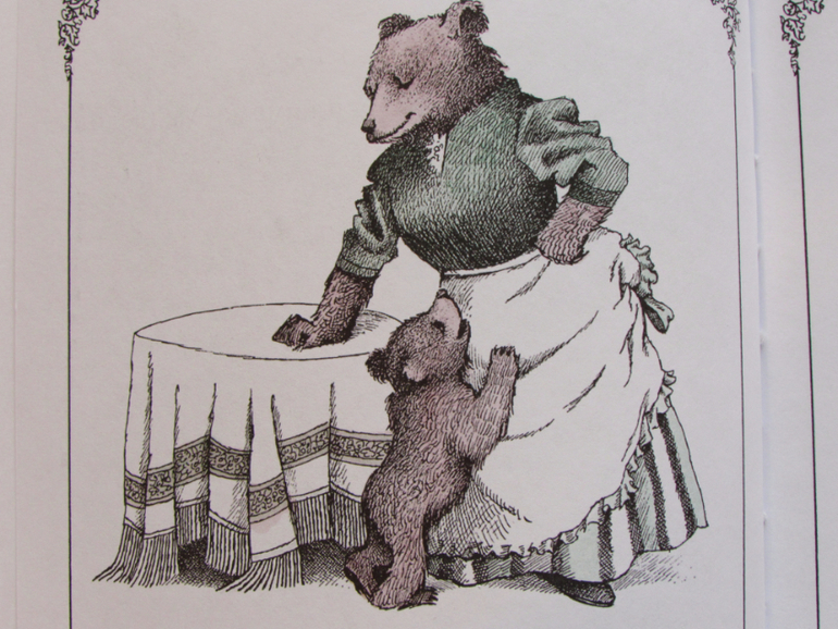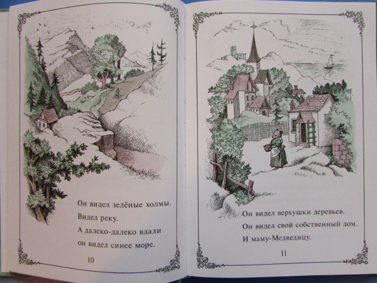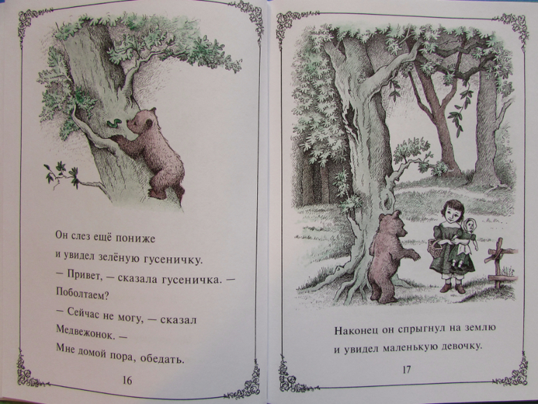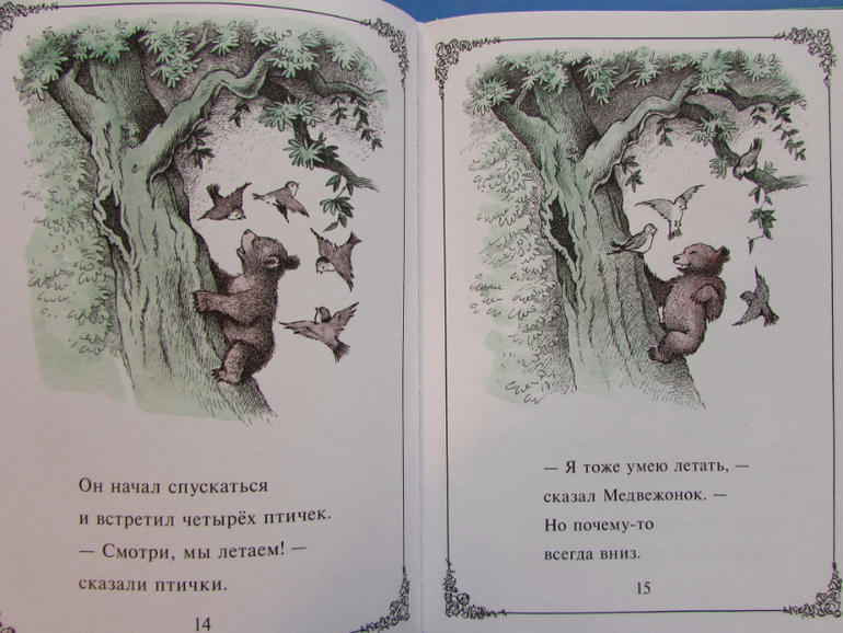 Если Медвежонок сидит на ветке дерева, то все рисунки именно так и нарисованы. Как будто мы тоже сидим рядом с Медвежонком и смотрим на всё сверху вниз.