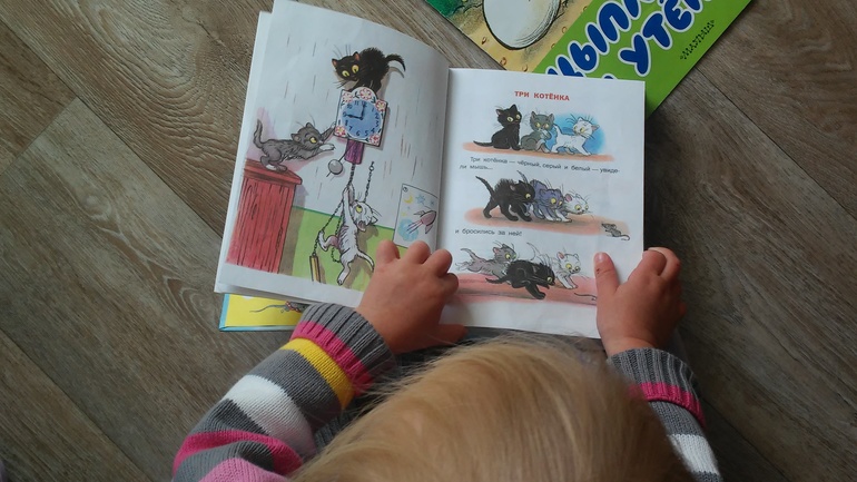 Кроме того, появилась проблема с чтением старшей- младшенькая подросла, поумнела и теперь категорически запрещает читать то, что ей не интересно. Только увидит, что мы устроились с книжкой, летит за своим любимым чтивом, потом пытается захлопнуть книжку старшей и подсунуть свою с криком 'титать' и головой еще для убедительности кивает ( есть у нее такая фишка, когда чего-то очень хочет). Старшая начинает вопить, мелочь за ней- приходится прекращать. Одно время еще и не позволяла старшей присоединяться к нашим чтениям, отпихивала, вопила, но к счастью недолго длился этот период.