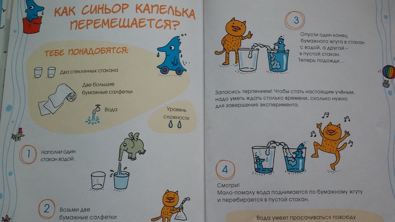 Синьор Капелька. Плюсы книги- в простой форме объясняет такое явление, как круговорот воды в природе,в конце даются интересные опыты с водой.