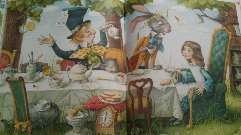 Все-таки купили Алису с Базановой- очень красивая книга, читать стало гораздо приятнее.