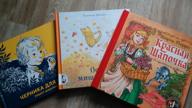 Эти книги у нас традиционно относятся к осенним- с мишкой Бруно все понятно, "Чернику для Саши" с заготовкой варенья на зиму тоже можно связать с осенью. А вот Красная шапочка попала у нас в разряд осенних книг благодаря рецепту яблочного пирога- есть у нас такая традиция осенью с наступлентем холодов готовить яблочный пирог, и в этом году мы решились наконец испечь пирог по этому рецепту- получилось вкусно, но это не главное. Ценен этот пирог был тем, что готовили его по-настоящему вместе- дочь сама просеивала муку, смешивала ингредиенты, резала и съедала яблоки, украшала и мазала желтком. А столько удовольствия ей принес этот процесс совместной готовки 'как в книжке'! Гораздо больше, чем процесс поедания.