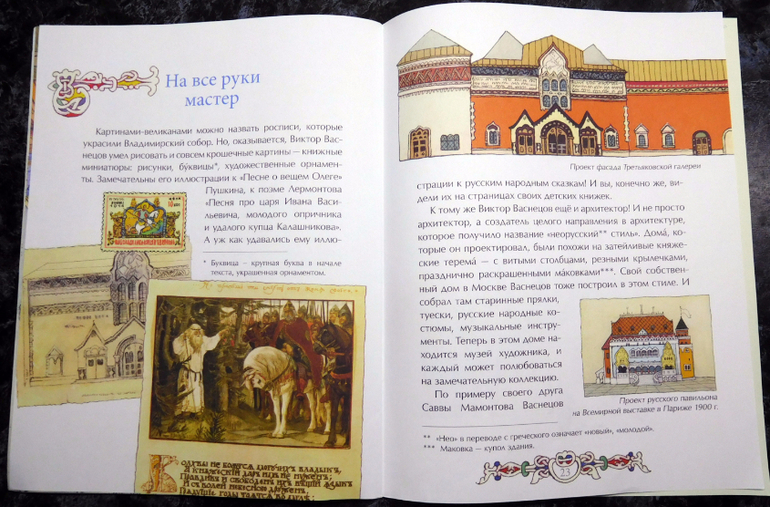А вы, например, знаете, что Васнецов первым из художников начал рисовать героев сказок и былин? До него этого никто не делал!.. Для меня это было открытием. В книге есть и другие интересные факты о художнике, например, меня поразил: