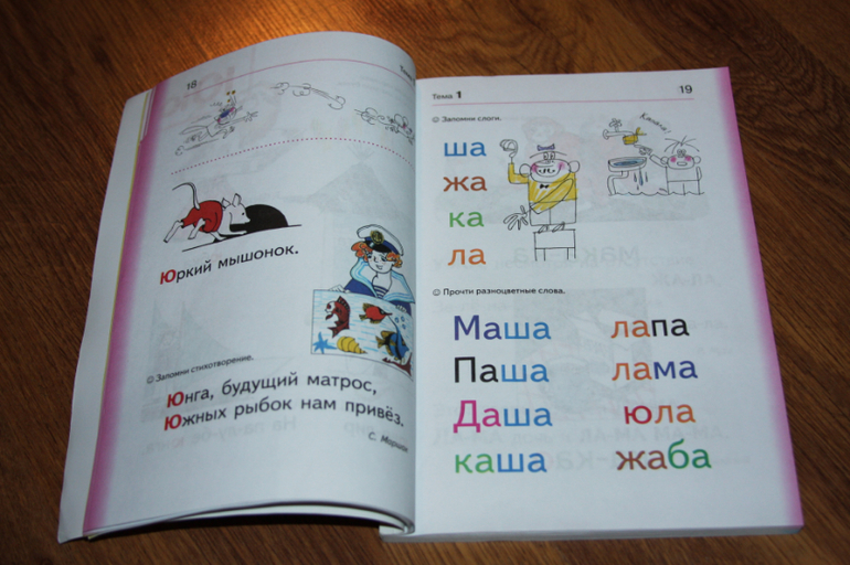 Книжка, по которой нас учили в нулевке.. При том, что читать я умела, книжка казалась ужасно заумной и трудной( А дочь ее просто читает и все, видимо современным детям как-то это проще..