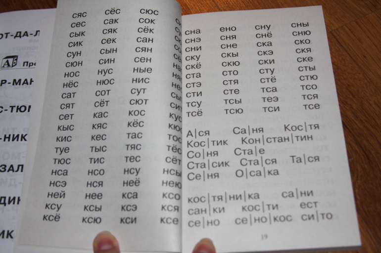 Но нет. Если через трехбуквенные слоги ребенок с азартом прорывался, то вот такая разбивка нам не подошла совсем(