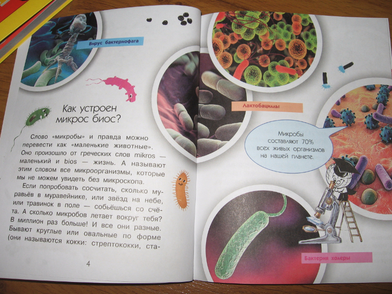 Мимо этой книги пройти мы не могли, т.к. эта тема Егора интересует очень давно. Даже периодически говорит, что мечтает найти лекарство от всех болезней, чтобы люди не умирали. Но слушал книгу с некоторым напряжением, чувствовалось, что ему немного неприятно слушать все это, хотя и интересно. Эту книгу осилили в один присест, не давал откладывать, просил дочитать. Начинается книга с того, как вообще были обнаружены микробы, коротко рассказано как они устроены, потом коротко рассказано о полезных бактериях, а уж только потом о заразных бактериях и способах борьбы с ними (пастеризация, антибиотики). Про вирусы рассказано отдельно. Так же рассказано об иммунитете, о том как защищен организм человека от вирусов и бактерий, как он с ними борется, о прививках лишь упомянуто, поэтому сторонники или противники прививок могут развить эту тему самостоятельно или вовсе обойти ее стороной. Как всегда доступно, информативно, интересно.
