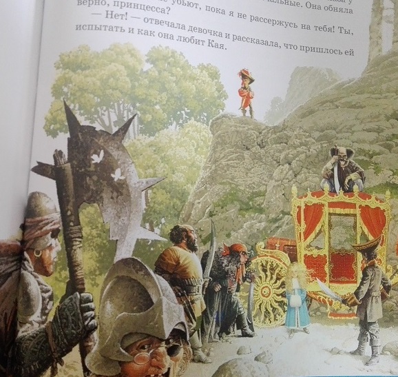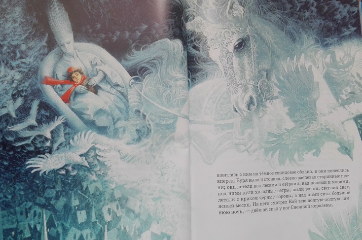 В живую "Снежная королева" меня вообще не впечатлила, т.к. качество печати не самое лучшее: цвета тусклые, присутствует некая размытость иллюстраций, все время хочется добавить контраста. Возможно, на другой бумаге эти иллюстрации смотрелись лучше, по крайней мере, в анонсах всё было гораздо симпатичнее.