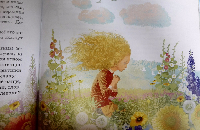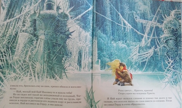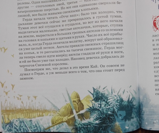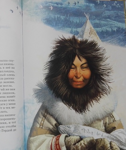 Видимо иллюстрации постарались сделать теплее, пока Герда не пришла на Северный полюс. Везде развеваются волосы. Приятно глазу.