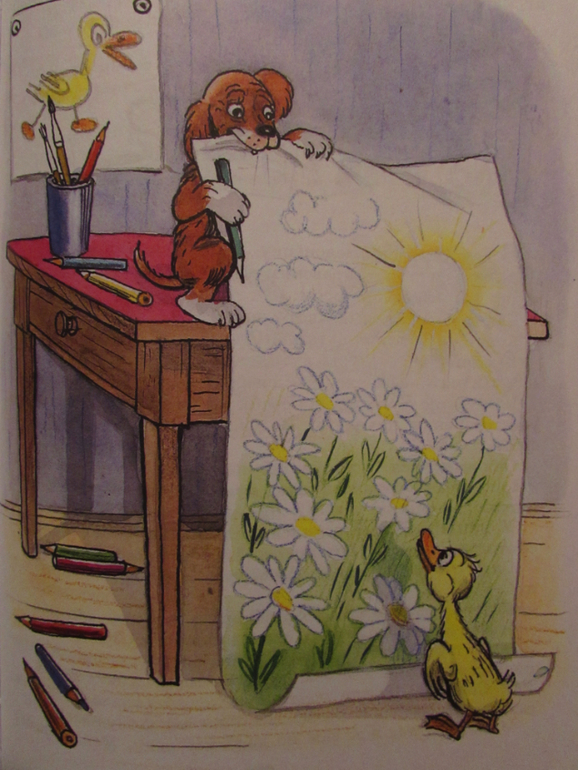 А вообще Сутеев уникален. В своих рисунках-картинках он умеет передать целую историю. Да так что и в отсутствие мамы ребенок может самостоятельно разобраться в сюжете.