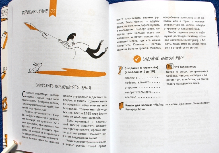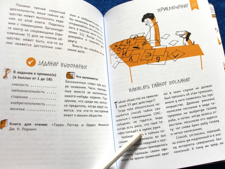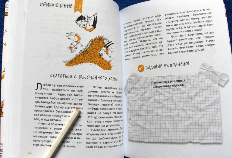 Самое важно при чтении блокнота это доверительные отношения с родителями выстраиваемые годами. Некоторые приключения без участия взрослых могут быть опасными (в этом случае блокнот предупреждает, что нужен взрослый!). Я с чистой душой пишу, что все задания приличные, т.к. найти опасности ребенок может и без блокнота. У меня в детстве такого не было, тем не менее, я облазила все деревья в округе, заброшенные стройки и гаражи, мусорная свалка была нашим любимым местом игр и поиска сокровищ. Сейчас в век гаджетов и соц.сетей детям нужна подсказка в виде такого блокнота чтобы поиграть в следопытов и хорошо, что в этом на каждой странице есть ссылка на личную безопасность.