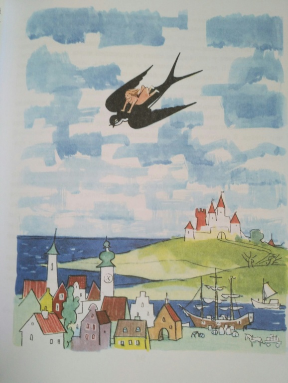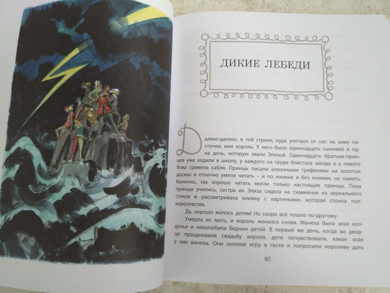 Моя любимая сказка была "Дикие лебеди", сколько же раз я её читала!! Так вот в ней всего 3 страничных иллюстрации, и несколько небольших. Но зато я помню как рисовала в своём воображении домик, где жила Элиза и плела рубашки, маленький такой и деревянный, он был очень похож на один из соседних домиков на даче, дворец, в который она попала, и даже кладбище - тёмное, страшное но зато с крапивой.