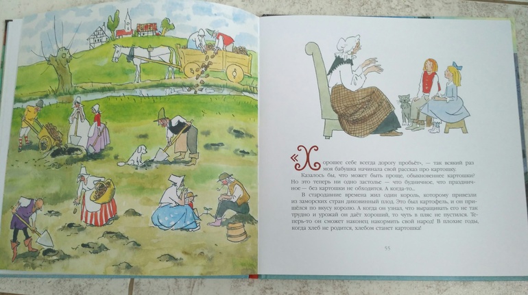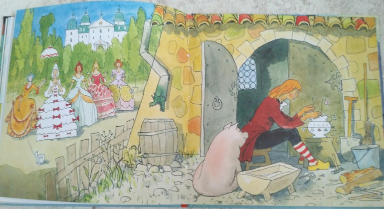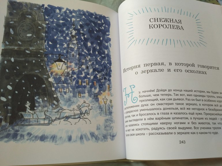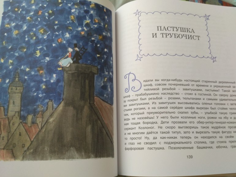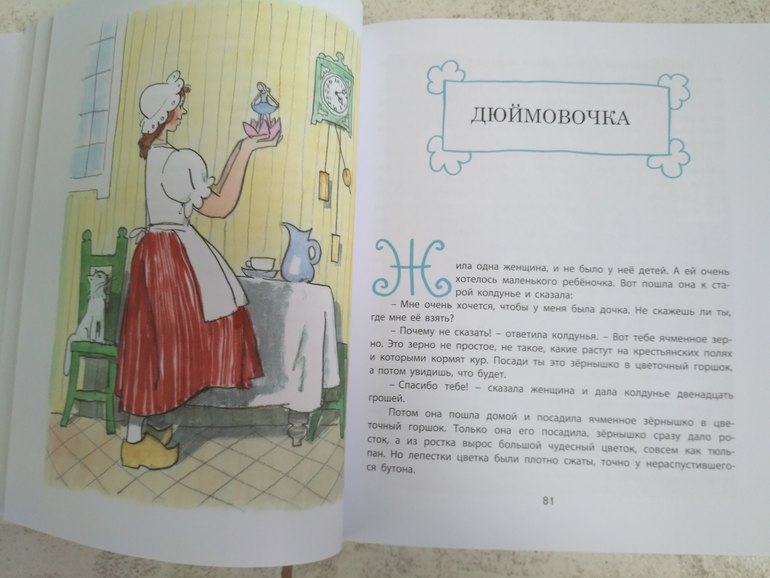 Но зато в ней гораздо больше иллюстрации, почти все постраничные, есть даже несколько на весь разворот. Да и сказки в ней хорошие "Огниво", "Свинопас " и совсем небольшая" Картошка ". Подойдёт для старших дошкольников и младших школьников.