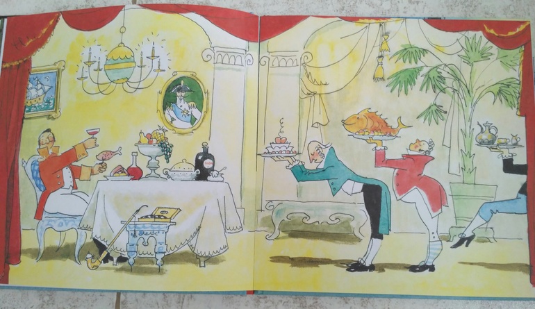 Поэтому не смотря на то, что у нас есть красивейшая книга с иллюстрациями Ломаева к этой сказке, Кокорин все таки мне роднее, его рисунки заставляют работать воображение, самому придумывать детали, образы, места..