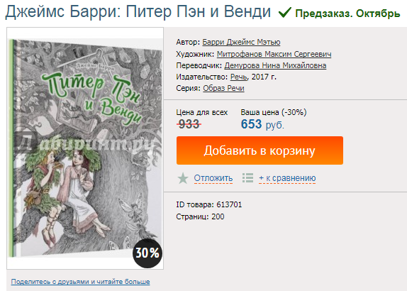 Какие новинки!!! Питера Пэна надо в первую очередь, очень долго его ждала!!! Потом Щелкунчика, будет дубль. Хотя Щелкунчик Митрофанова все же роднее пока, Ломаев тоже понравился. Жду Дюймовочку Ломаева. Мне кажется, чудесная должна получиться книга.