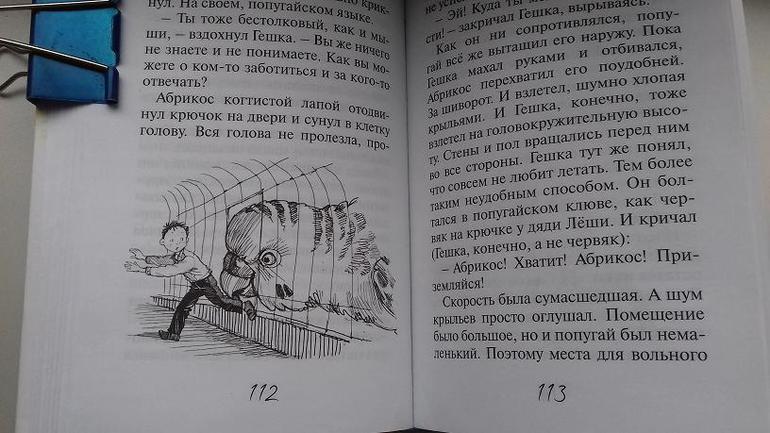 Закончилось всё грустно: мыши разбежались, ящерица потеряла хвост, а попугай улетел в окно. Испугавшись гнева родителей, Гешка пошел искать птичку в зоомагазин. И там с ним произошло нечто странное. Гешка очутился в клетке! У него было всё: уютный дом, вдоволь фруктов и даже горка с качелями. Только каждый день приходили гигантские мышки, прилетал попугай, доставали его из клетки и "играли" с ним.