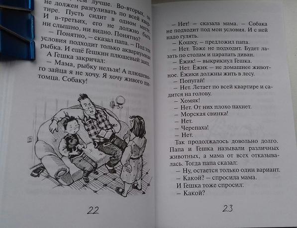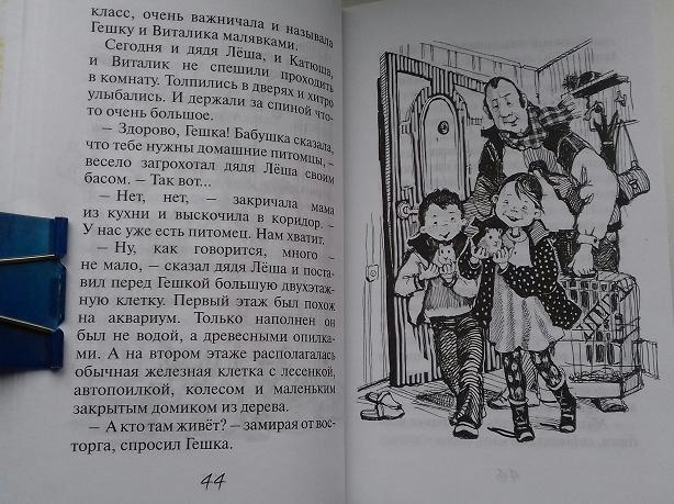 Ее герой - первоклассник Гешка. Его учительница дала родителям своих учеников задание - завести домашнего питомца, чтобы дети учились заботиться о ком-то, чтобы воспитывать у них чувство ответственности.