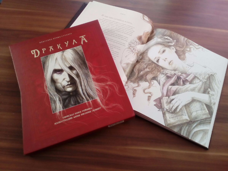 П.С: Ну и о "подарке", собственно... А то совсем заболталась. Охотно порекомендую книгу тем, кто только начинает знакомиться с жанром, и еще не читал Стокера. Я, конечно, повозмущалась немного вольностью пересказчика, ушедшего в некоторых местах от "традиционного сюжета". Но в этой книге текст -это не главное. ИЛЛЮСТРАЦИИ!!!!Просто шедевральные. Эстетическое наслждение прям получаешь. А еще очень необычен образ Дракулы. У меня литературный Дракула слился с героем Гэри Олдмана-этакий эпатажный джентельмен, а тут красавец со вполне себе романтично-славянской внешностю...