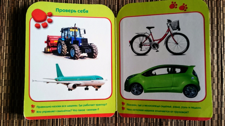 А из книжки про транспорт - про основные виды транспорта, звуки, кто водит этот транспорт и чем он полезен.
