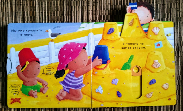 Эти две книжки из серии появились у нас где-то после года дочки и стали очень любимыми. Мне они тоже очень нравяться, яркие симпатичные картинки, на каждой странице какая-то интерактивная деталь, которая оживляет картинку.
