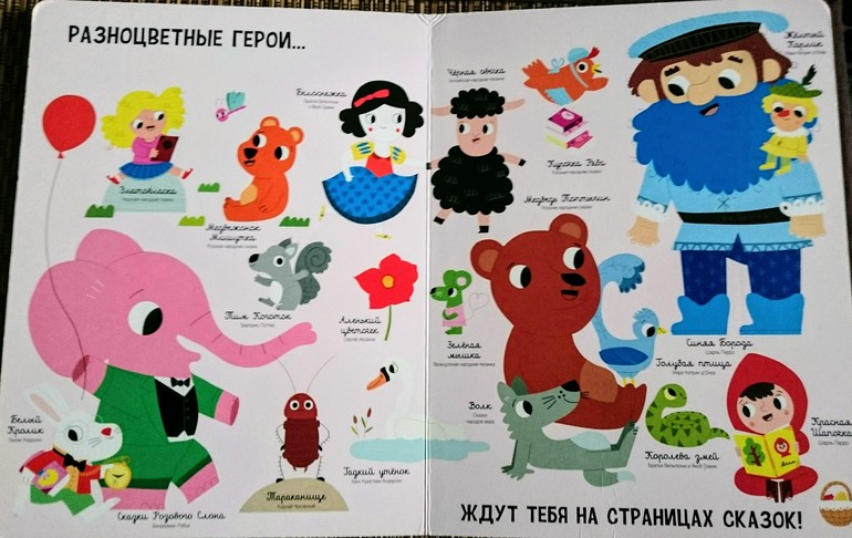 На последнем развороте просто разные сказочные персонажи, в именах которых использован цвет, например Красная шапочка или Белый кролик, ну не у всех, но у многих.
