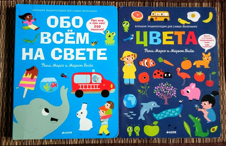 2. Книги "Цвета" и "Обо всём на свете", издательство Clever , серия Мои первые слова.