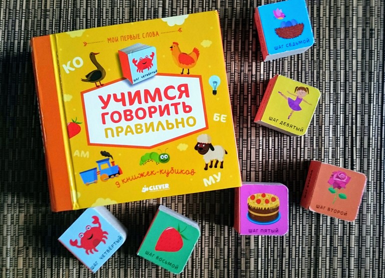 3. Книжки-кубики "Учимся говорить правильно", издательство Clever, серия "Мои первые слова".