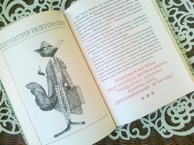А какие там забавные персонажи! Близорукий часовой мастер Тим-енот, который спал в кинотеатре, чтобы отдохнуть от вечного тик-таканья в своём доме... Портной Игл-ёж со своими шестьюдесятью тремя родственниками... Тунеядец Амвросий - кузен главного героя... А совершенно глухая тётка Иохима Амалия! Шедевральные! Ну и, конечно, самый колоритный - Иохим, постоянно читающий невероятно умную книжку Заочный Курс Частных Детективов.... А Королевское Управление По Учёту Сосновых Иголок! Каково?))) А история с ходячими сиреневыми кустами - веселье невероятное!!!))
