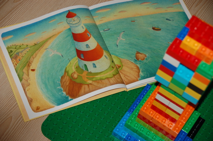 Слушай, а у меня не стих! Просто гляделка, без текста на страничках! В конце рассказывается про жизнь в море, про осьминога и про маяк, но это текст) Так что, у нас с Росей полноценный виммельбух!
