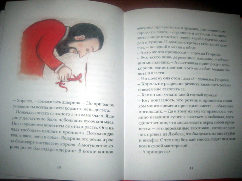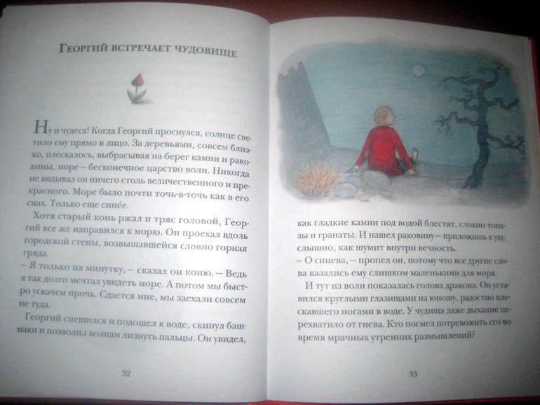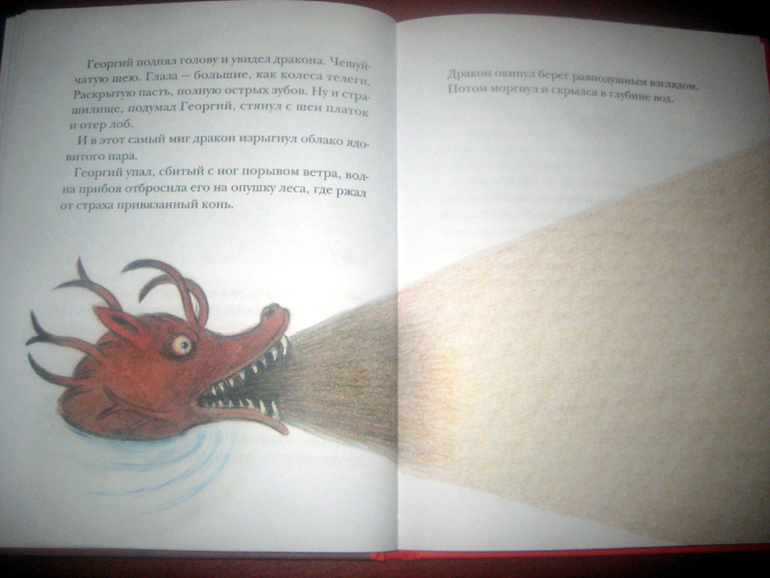 - Вы сами себя берегите, - отвечал Георгий, - а уж я как-нибудь справлюсь. Может, мне еще повезет и самая красивая в мире принцесса предложит мне взять ее в жены. Та самая, у которой золотые волосы, губы красные, как брусника, глаза синие, как море, а уши словно раковины".