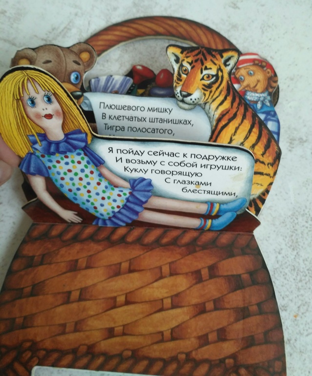 Корзинка - хорошая книжечка, понятный смысл :" Я пойду сейчас к подружке и возьму с собой игрушки... " в продаже давно нет.. "